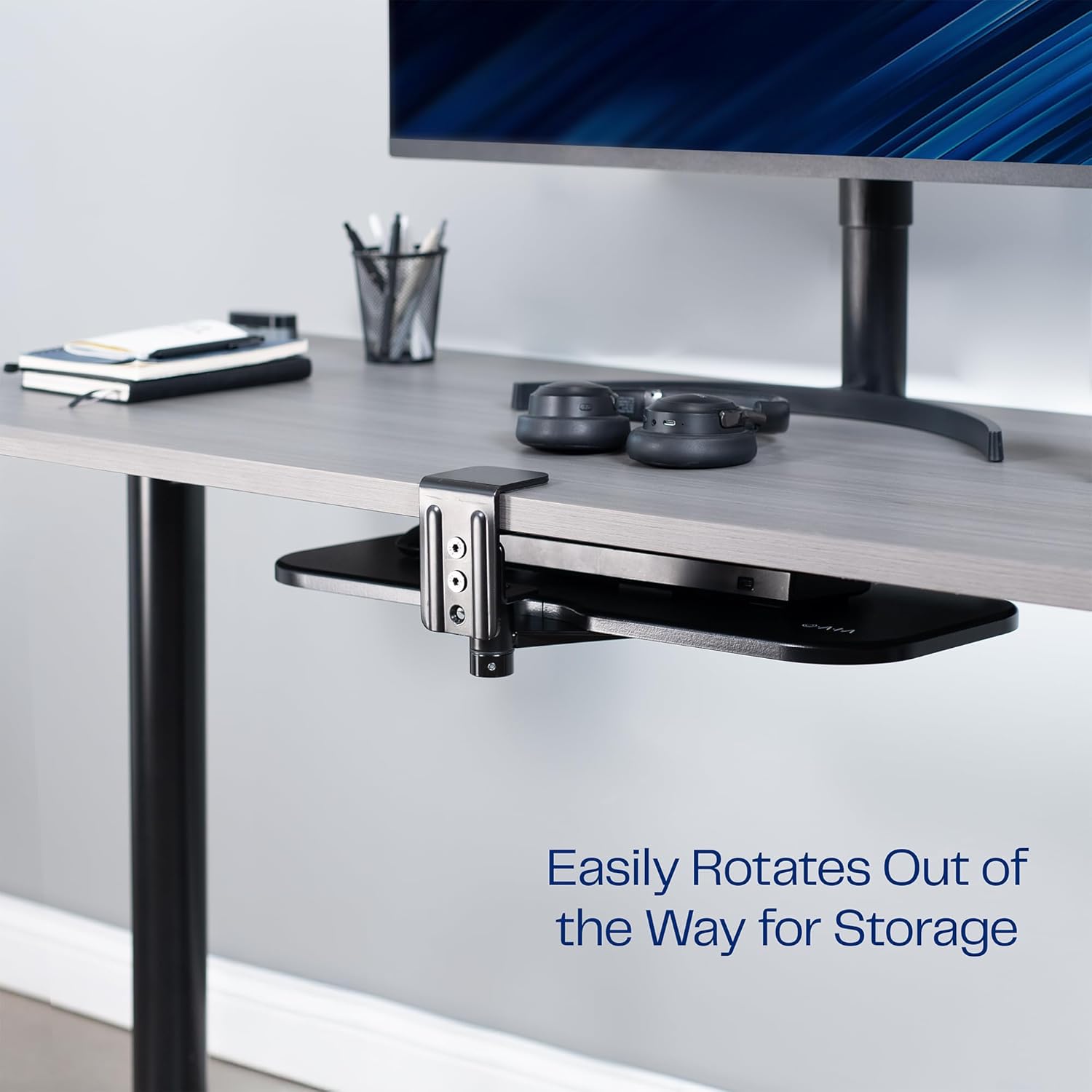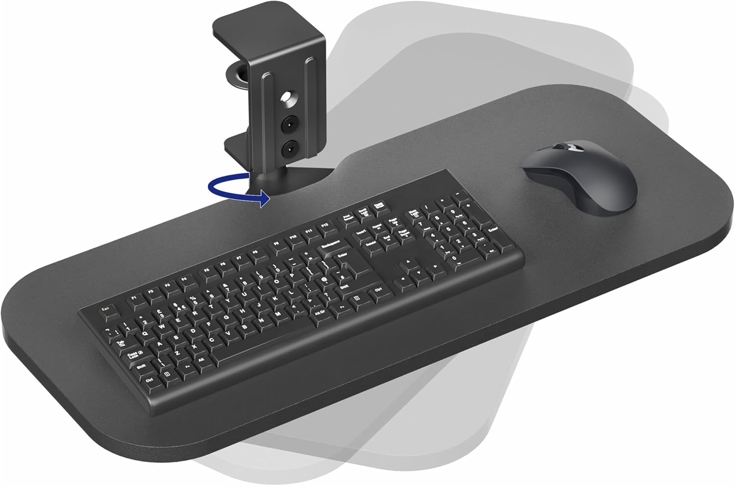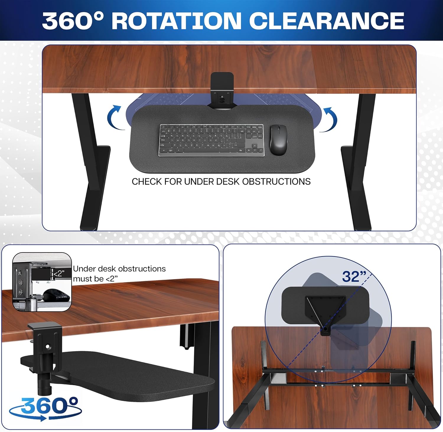 Clamp-on 23 x 10 inch Rotating Computer Keyboard and Mouse Tray, Extra Sturdy Desk Swivel Clamp, Ergonomic Typing, Black, MOUNT-KB04CB