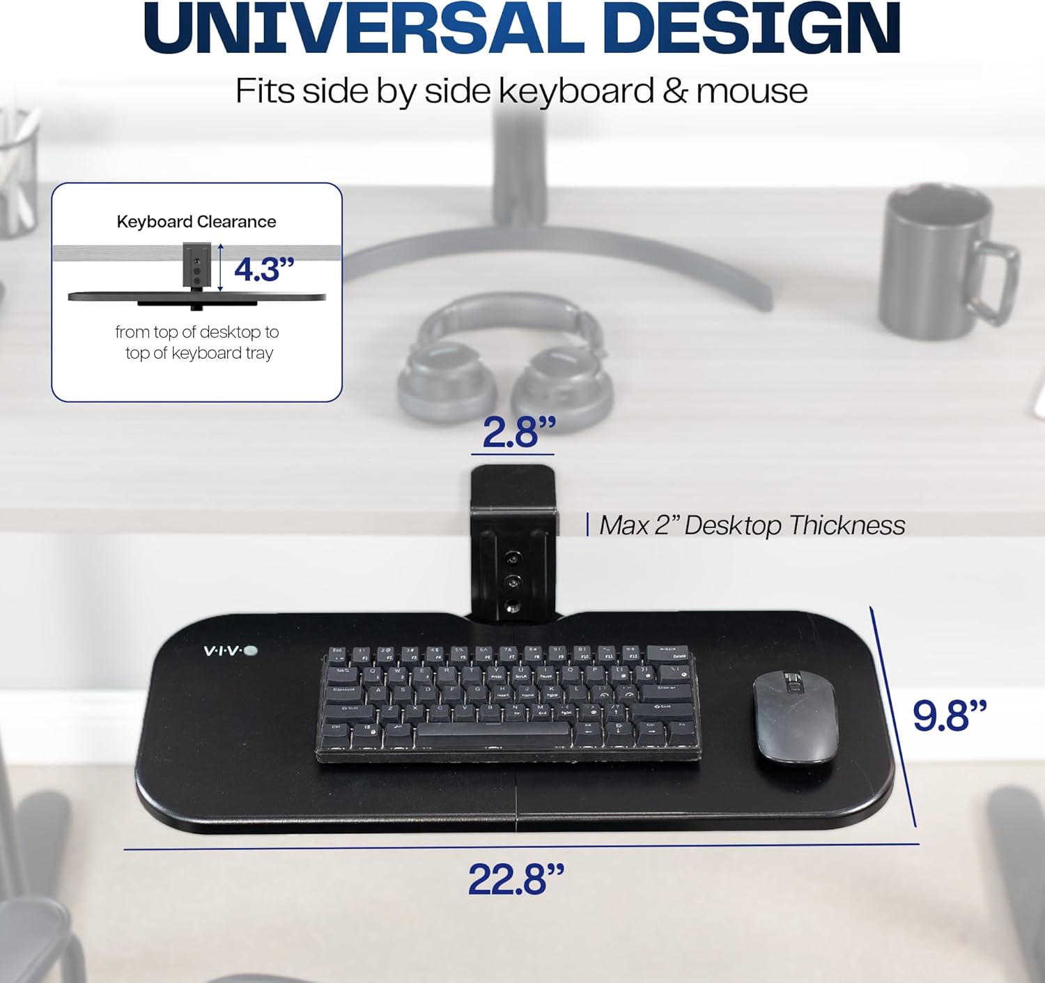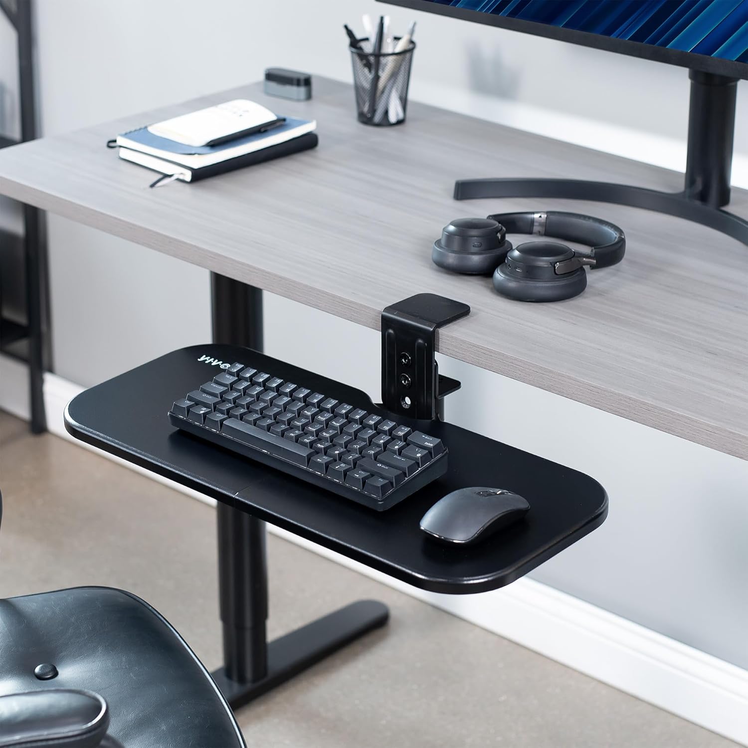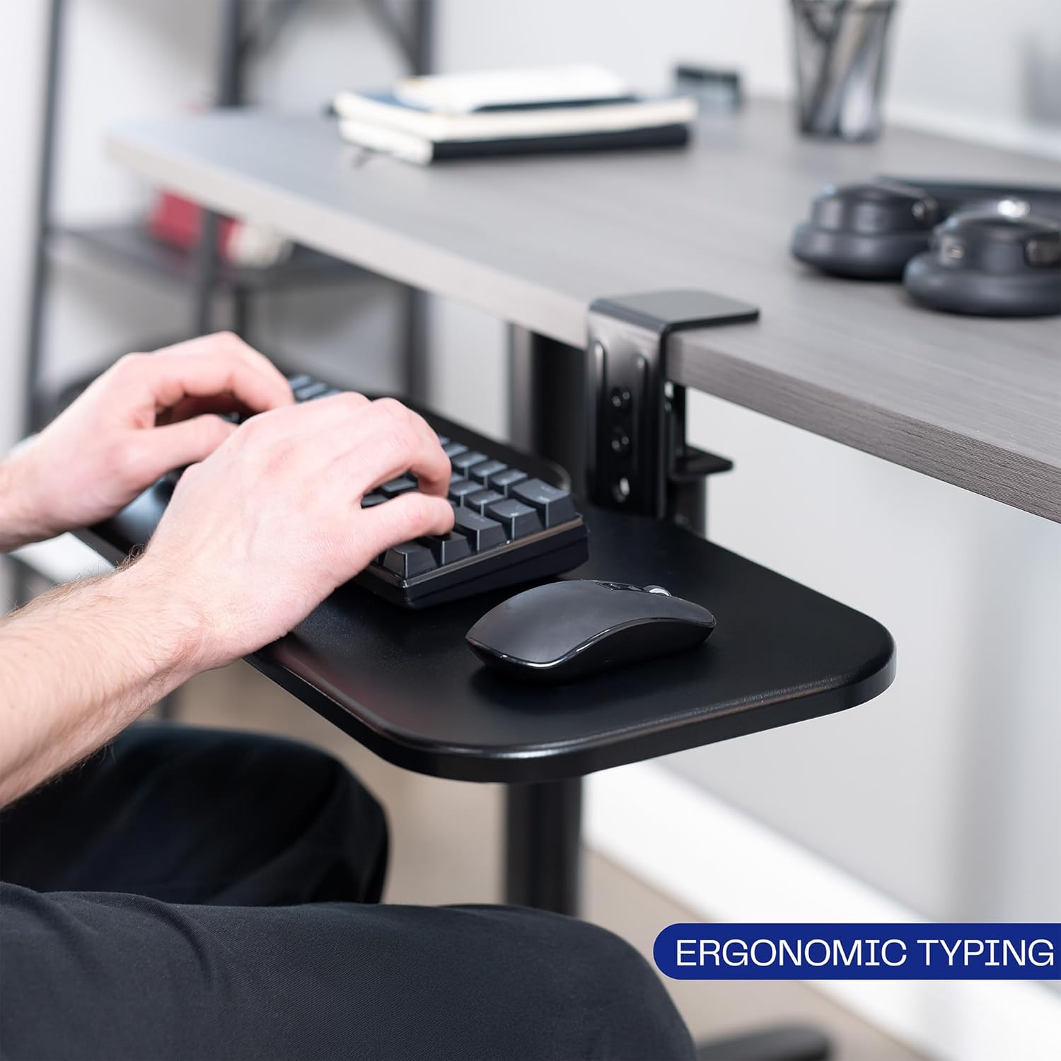 Clamp-on 23 x 10 inch Rotating Computer Keyboard and Mouse Tray, Extra Sturdy Desk Swivel Clamp, Ergonomic Typing, Black, MOUNT-KB04CB